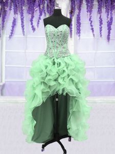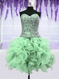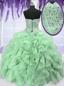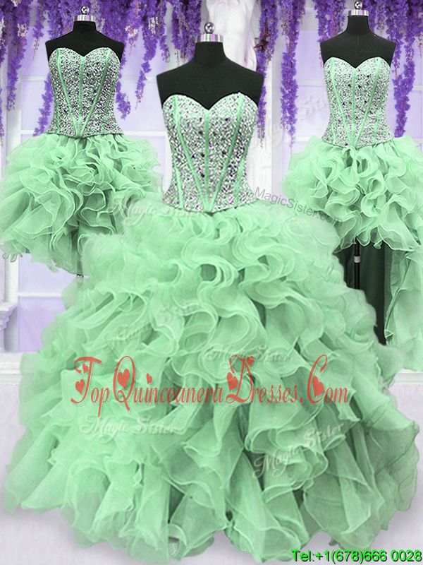 Four Piece Apple Green Sweetheart Neckline Beading and Ruffles Quince Ball Gowns Sleeveless Lace Up