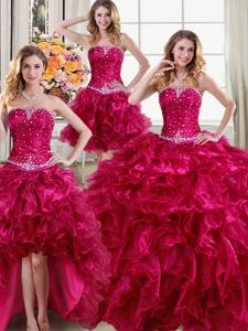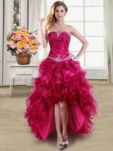 Four Piece Ball Gowns Sweet 16 Quinceanera Dress Fuchsia Strapless Organza Sleeveless Floor Length Lace Up