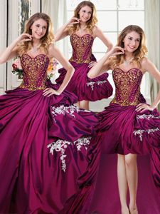 Four Piece Burgundy Ball Gowns Sweetheart Sleeveless Taffeta Floor Length Lace Up Beading and Appliques and Pick Ups 15 Quinceanera Dress