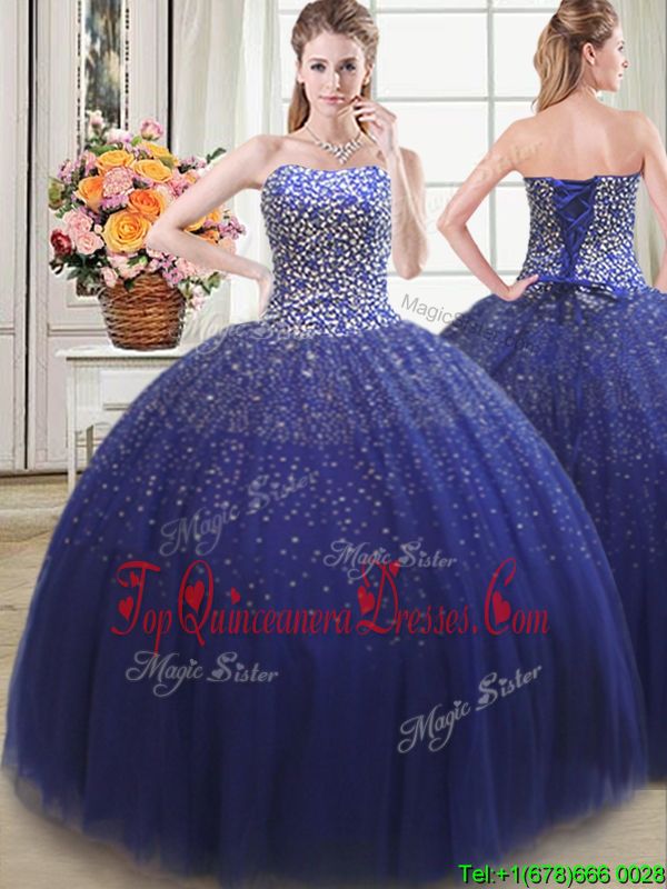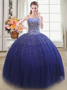 Four Piece Champagne Ball Gowns Sweetheart Sleeveless Tulle Floor Length Lace Up Beading Sweet 16 Dresses