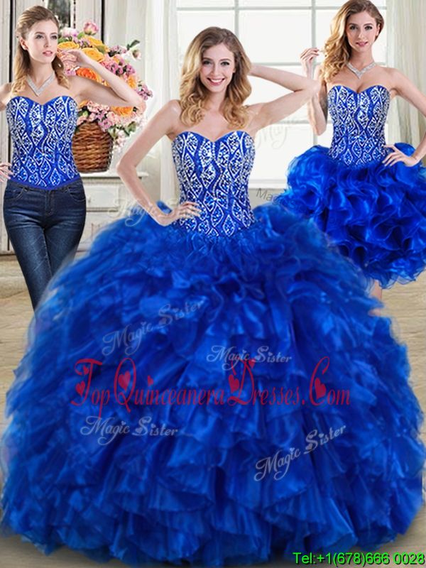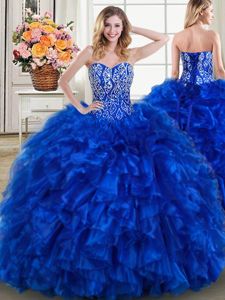 Four Piece Eggplant Purple Lace Up Sweetheart Beading and Ruffles Sweet 16 Dress Organza Sleeveless