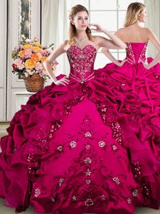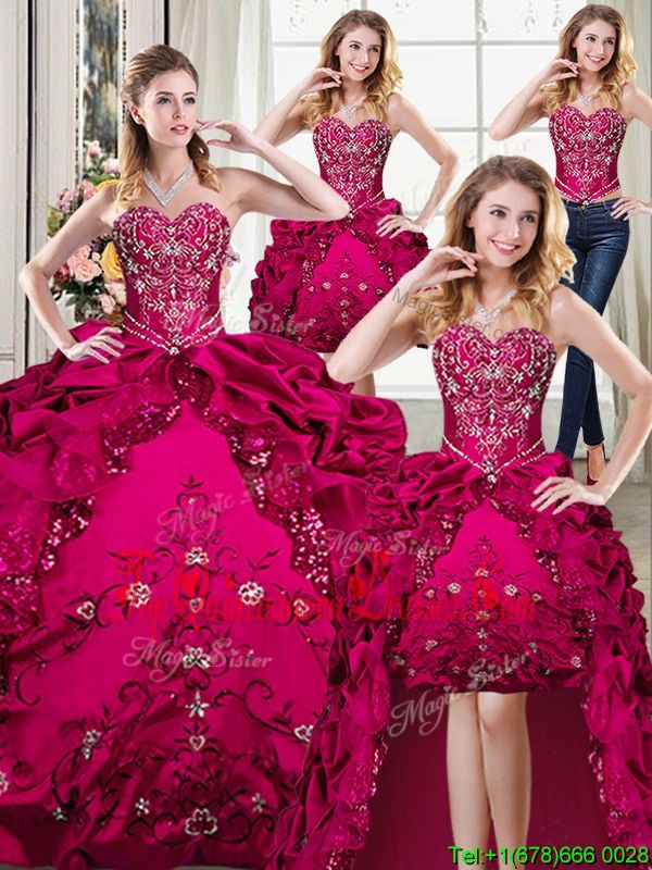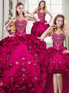 Four Piece Floor Length Fuchsia Quinceanera Dress Sweetheart Sleeveless Lace Up