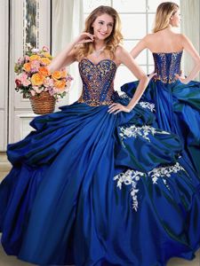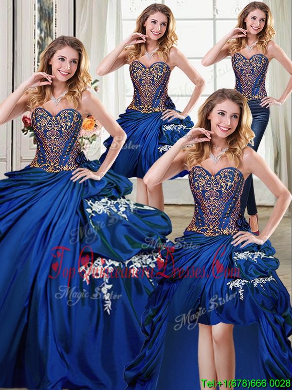 Four Piece Floor Length Lace Up Quinceanera Gown Royal Blue and In for Military Ball and Sweet 16 and Quinceanera with Beading and Appliques and Pick Ups