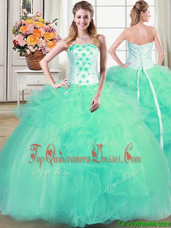 Four Piece Fuchsia Sleeveless Floor Length Beading and Appliques and Ruffles Lace Up Quinceanera Dress