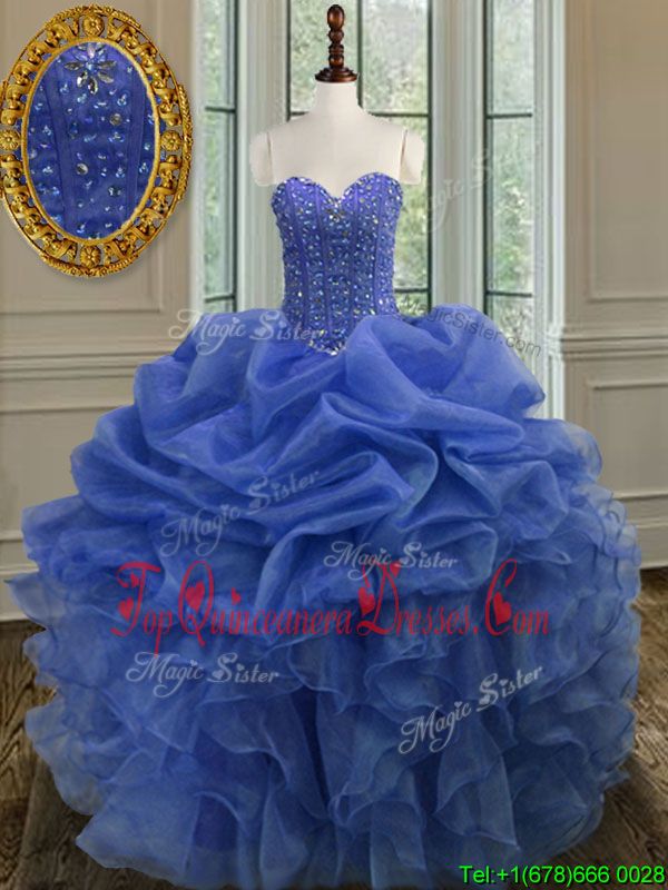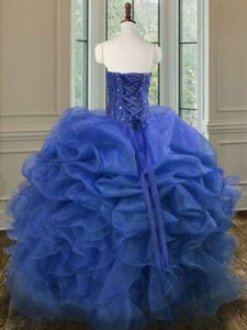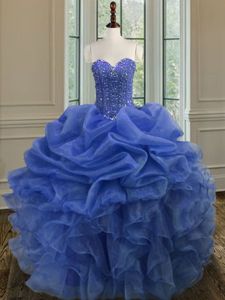 Four Piece Gold Sweetheart Neckline Beading and Ruffles Sweet 16 Dress Sleeveless Lace Up