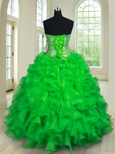 Four Piece Green Sweetheart Lace Up Beading and Ruffles Vestidos de Quinceanera Sleeveless