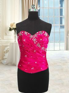 Four Piece Hot Pink Lace Up Sweetheart Beading and Ruffles and Ruching Quinceanera Gowns Organza Sleeveless