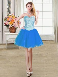 Four Piece Pick Ups Ball Gowns Quince Ball Gowns Blue Sweetheart Organza Sleeveless Floor Length Lace Up