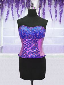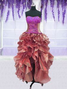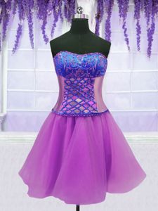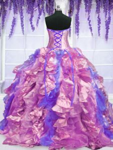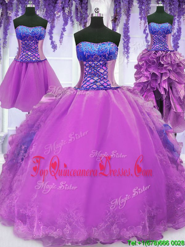 Four Piece Purple Ball Gowns Embroidery and Ruffles Vestidos de Quinceanera Lace Up Organza Sleeveless Floor Length