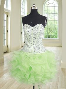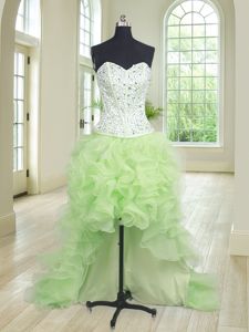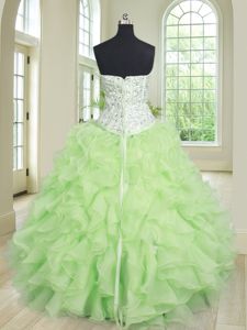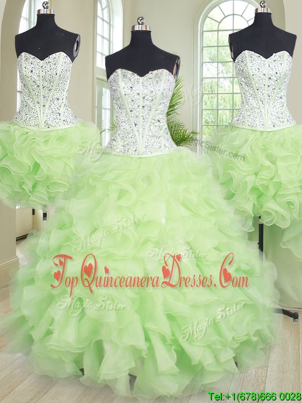 Four Piece Purple Organza Lace Up Sweetheart Sleeveless Floor Length Quinceanera Gown Beading and Ruffles and Sequins
