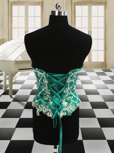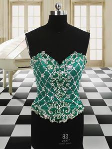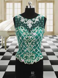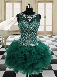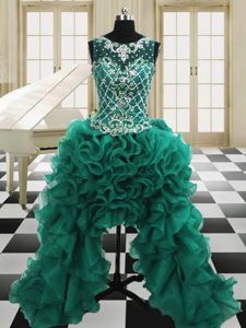 Four Piece Scoop Floor Length Dark Green Quinceanera Gowns Organza Sleeveless Beading and Ruffles