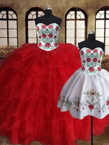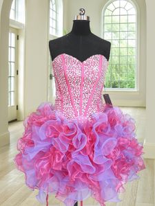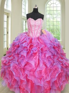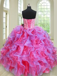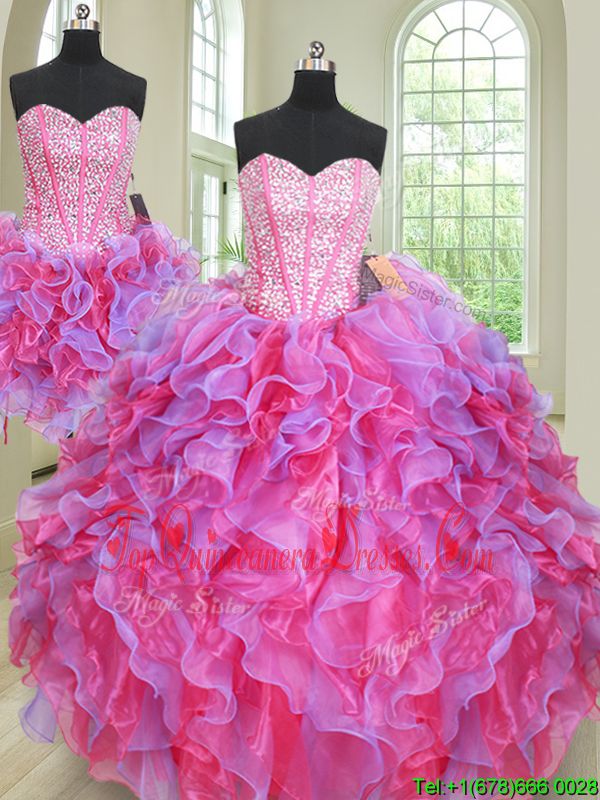 Four Piece Sleeveless Organza Floor Length Lace Up Sweet 16 Dress in Multi-color for with Beading and Ruffles