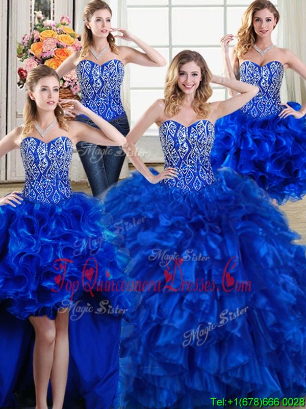 Four Piece Sweetheart Sleeveless Brush Train Lace Up Ball Gown Prom Dress Royal Blue Organza
