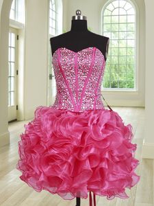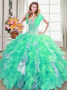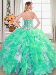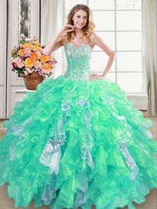 Four Piece Sweetheart Sleeveless Organza Quince Ball Gowns Beading and Ruffles Lace Up
