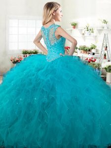 Four Piece White and Hot Pink Sleeveless Floor Length Beading Lace Up Sweet 16 Quinceanera Dress