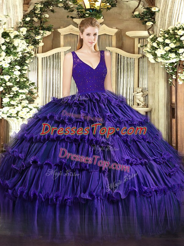 Free and Easy Beading and Ruffled Layers Sweet 16 Dresses Purple Zipper Sleeveless Floor Length