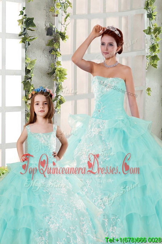 Free and Easy Floor Length Turquoise 15th Birthday Dress Organza Sleeveless Beading and Sequins