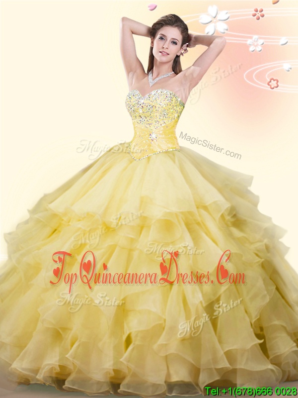 Free and Easy Floor Length Yellow Sweet 16 Quinceanera Dress Organza Sleeveless Beading and Ruffles