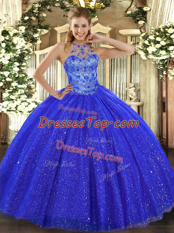 Free and Easy Halter Top Sleeveless Tulle and Sequined 15 Quinceanera Dress Beading and Embroidery Lace Up