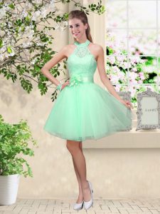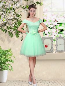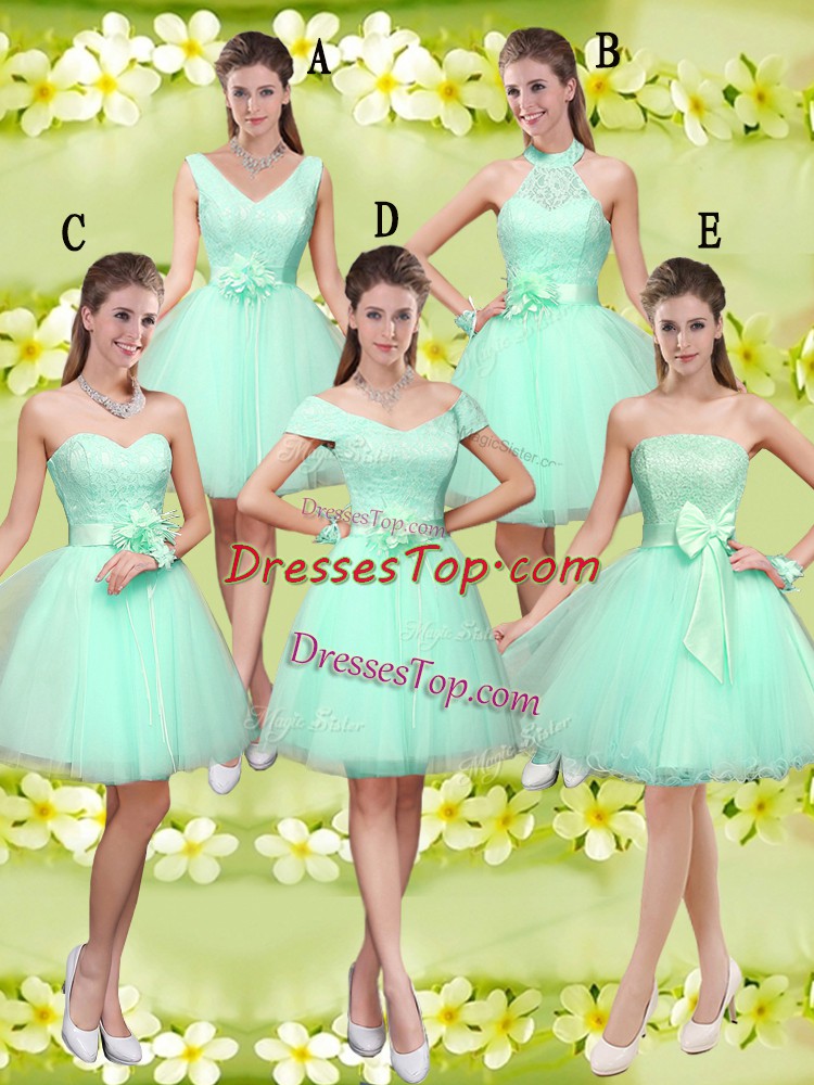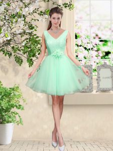 Free and Easy Knee Length Apple Green Quinceanera Court Dresses V-neck Sleeveless Lace Up
