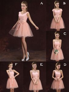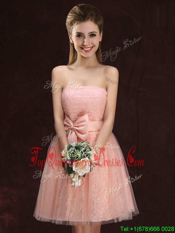 Free and Easy Mini Length A-line Sleeveless Peach Dama Dress Lace Up