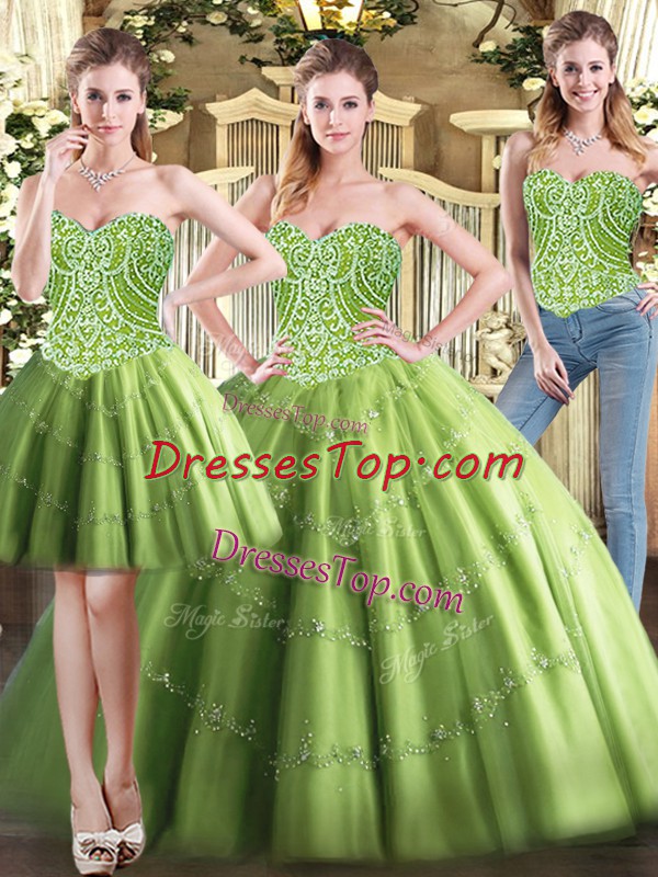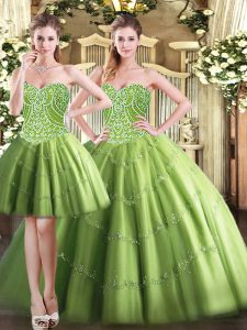 Free and Easy Olive Green 15th Birthday Dress Military Ball and Sweet 16 and Quinceanera with Beading Sweetheart Sleeveless Lace Up