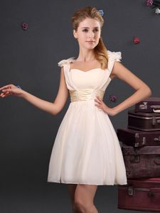 Free and Easy Sleeveless Chiffon Quinceanera Court Dresses Ruffles and Sequins and Ruching and Bowknot and Hand Made Flower Zipper