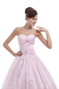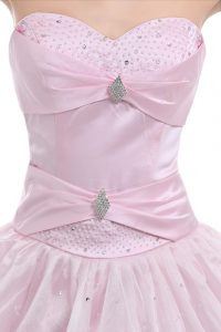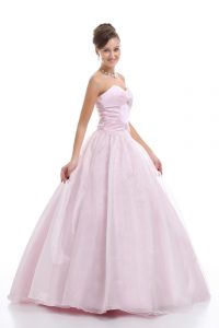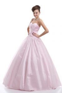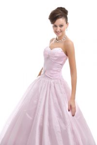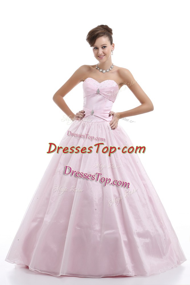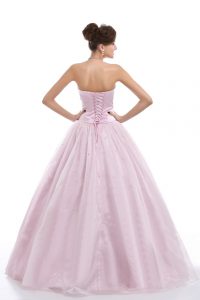 Free and Easy Sleeveless Floor Length Beading Lace Up Quinceanera Gown with Pink