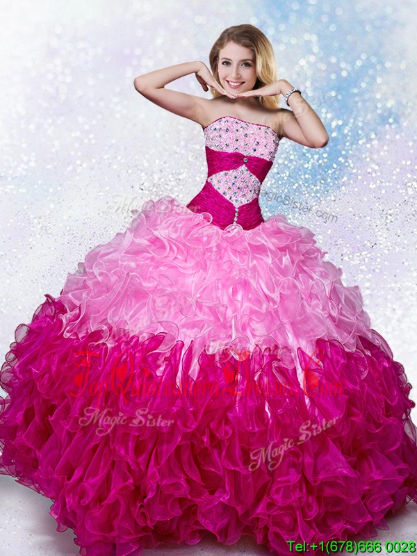 Free and Easy Strapless Sleeveless Lace Up Vestidos de Quinceanera Multi-color Organza