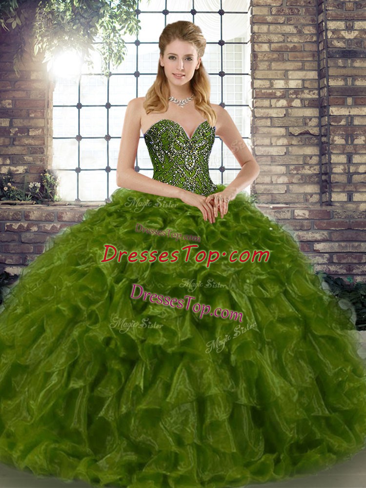 Free and Easy Sweetheart Sleeveless Organza Sweet 16 Quinceanera Dress Beading and Ruffles Lace Up