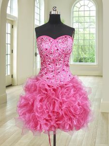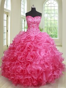 Free and Easy Three Piece Floor Length Hot Pink Sweet 16 Quinceanera Dress Organza Sleeveless Beading and Ruffles