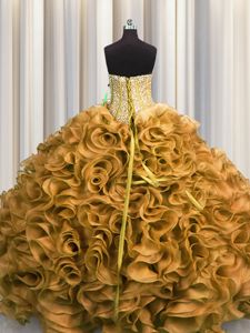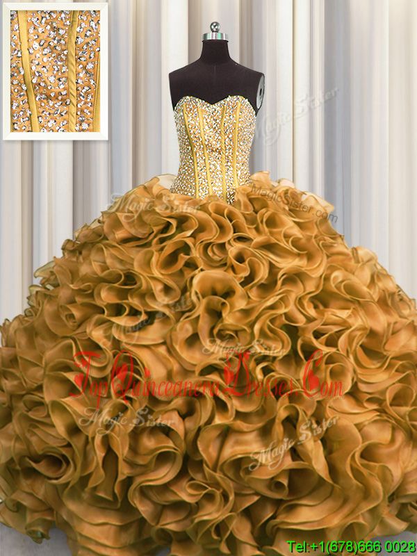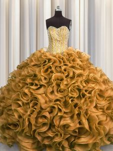 Free and Easy Two Tone Visible Boning Multi-color Ball Gowns Organza Sweetheart Sleeveless Beading and Ruffles Floor Length Lace Up Ball Gown Prom Dress