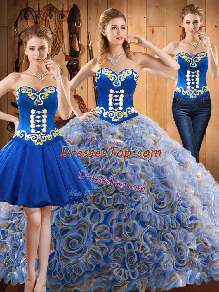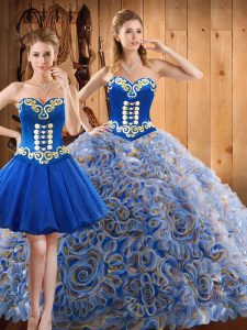 Free and Easy With Train Lace Up Sweet 16 Dresses Multi-color for Military Ball and Sweet 16 and Quinceanera with Embroidery Sweep Train