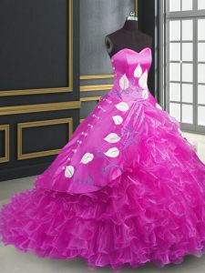 Fuchsia 15 Quinceanera Dress Sweetheart Sleeveless Brush Train Lace Up