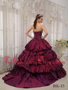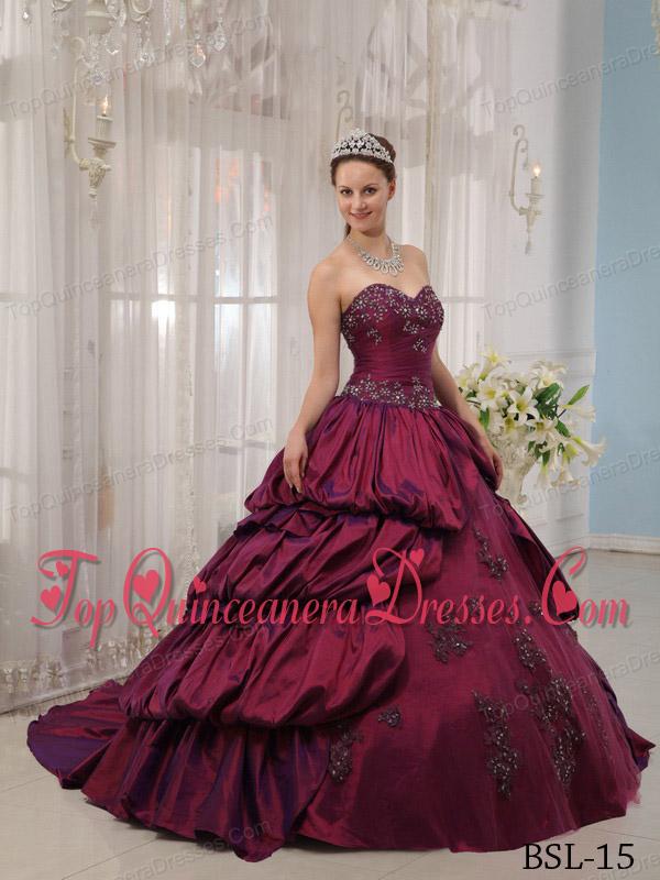 Fuchsia Ball Gown Sweetheart Court Train Taffeta Appliques Vestidos de Quinceanera