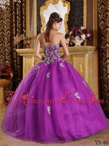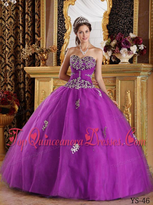 Fuchsia Ball Gown Sweetheart Floor-length Appliques Tulle Quinceanera Dress