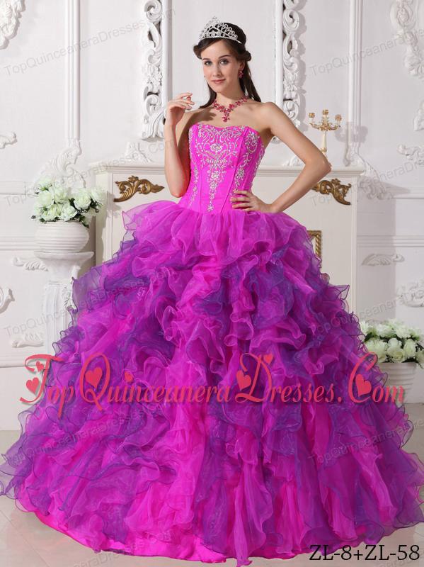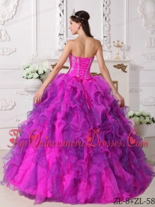 Fuchsia Ball Gown Sweetheart Floor-length Satin and Organza Embroidery Quinceanera Dress