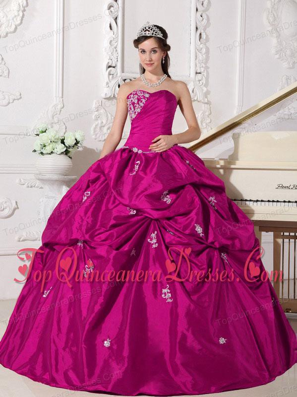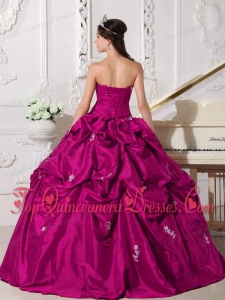 Fuchsia Ball Gown Sweetheart Floor-length Taffeta Beading Fashionable Quinceanera Dress