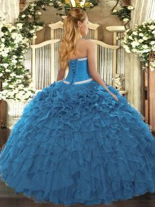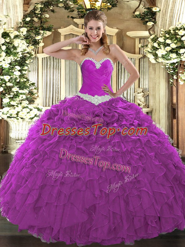 Fuchsia Ball Gowns Appliques and Ruffles Quinceanera Dress Lace Up Organza Sleeveless Floor Length