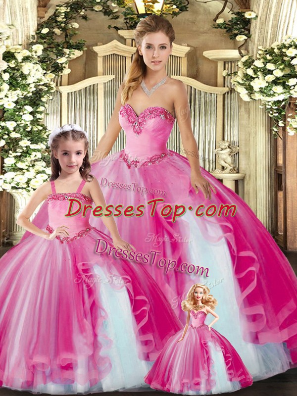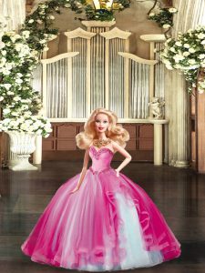 Fuchsia Ball Gowns Organza Sweetheart Sleeveless Beading and Ruffles Floor Length Lace Up Quinceanera Dresses
