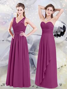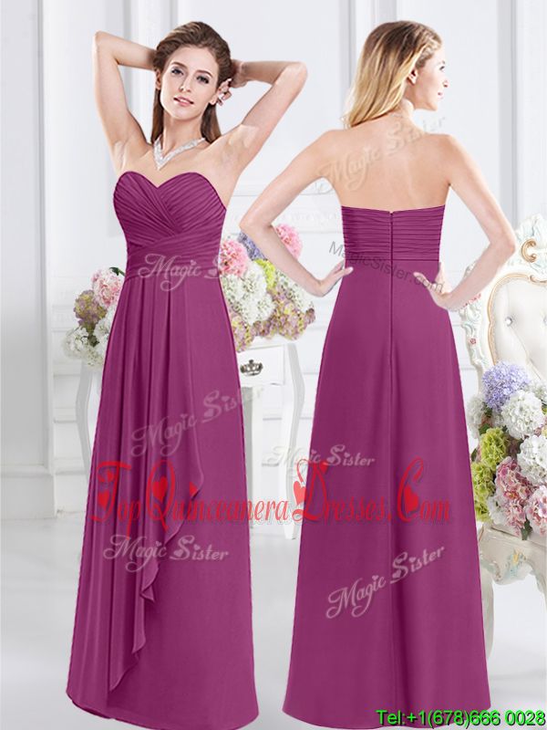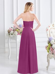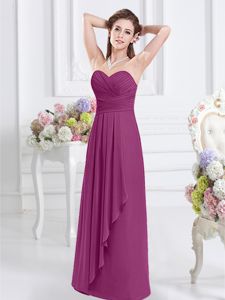 Fuchsia Empire Sweetheart Sleeveless Chiffon Floor Length Zipper Ruching Dama Dress