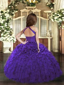 Fuchsia Lace Up Girls Pageant Dresses Ruffles Sleeveless Floor Length