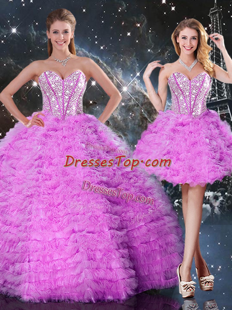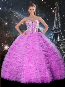 Fuchsia Organza Lace Up Sweetheart Sleeveless Floor Length Quinceanera Dress Beading and Ruffled Layers