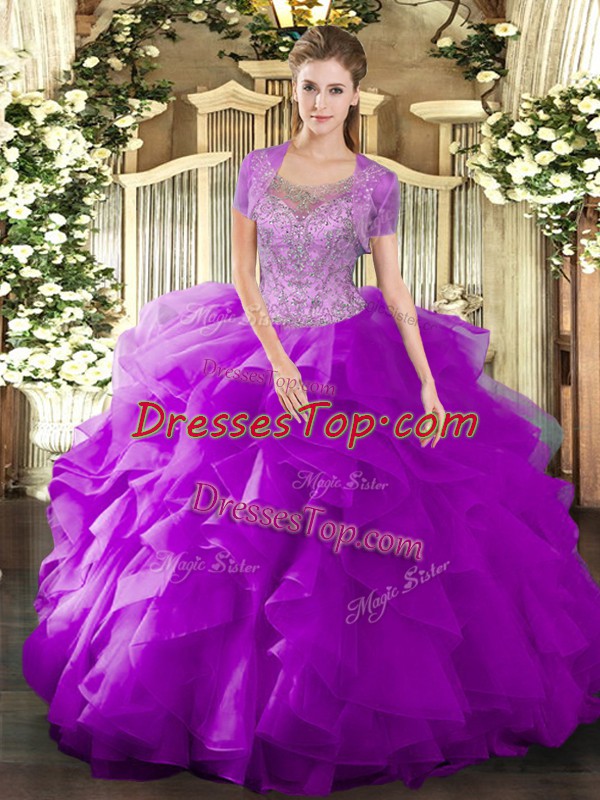 Fuchsia Sleeveless Beading and Ruffled Layers Floor Length Sweet 16 Dress
