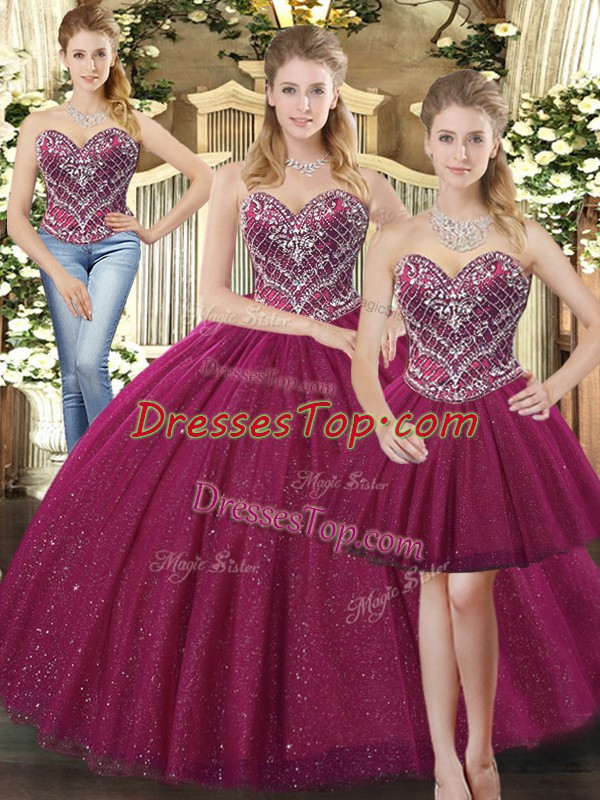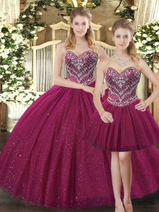 Fuchsia Sleeveless Beading Floor Length Quinceanera Gowns