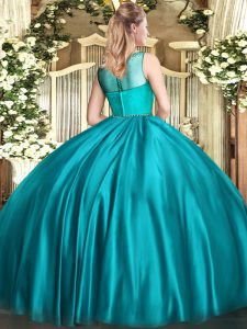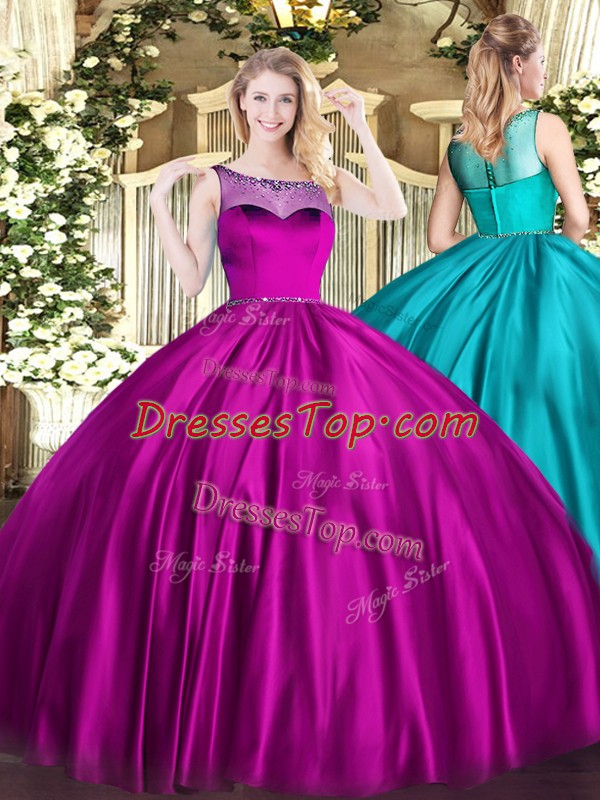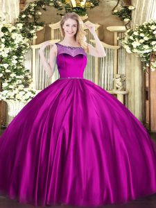 Fuchsia Sleeveless Floor Length Beading Zipper Vestidos de Quinceanera