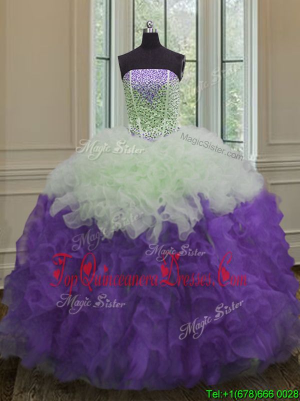 Fuchsia Sleeveless Floor Length Embroidery Lace Up Ball Gown Prom Dress