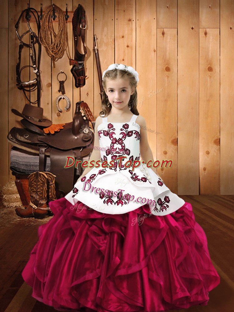Fuchsia Sleeveless Organza Lace Up Pageant Dress for Womens for Sweet 16 and Quinceanera