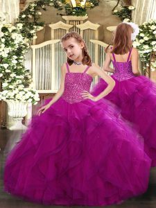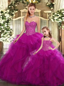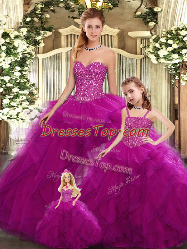 Fuchsia Sleeveless Organza Lace Up Sweet 16 Dresses for Military Ball and Sweet 16 and Quinceanera