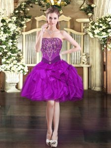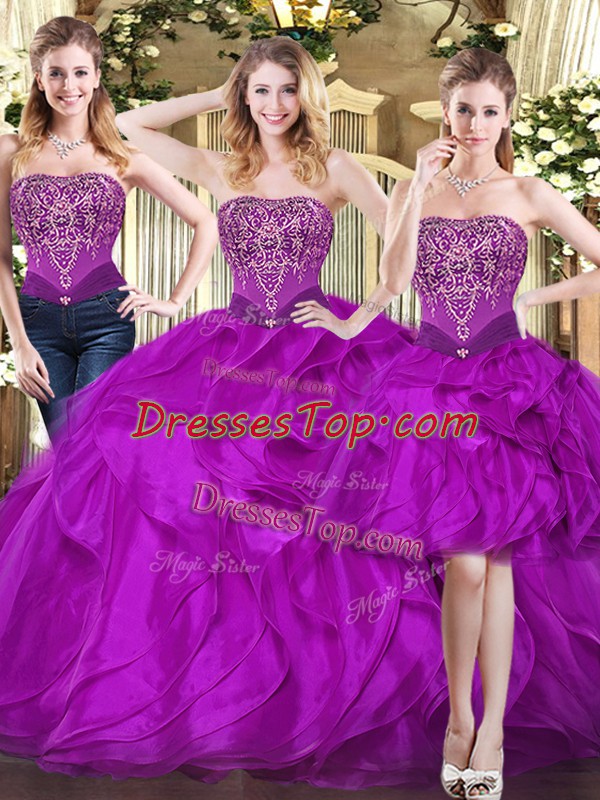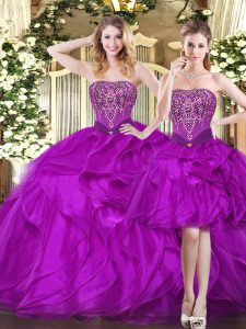 Fuchsia Strapless Lace Up Beading and Ruffles Sweet 16 Dress Sleeveless